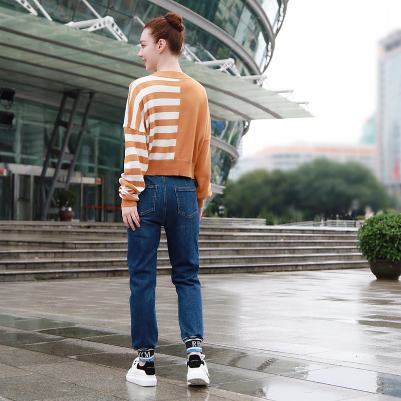 Striped crew neck sweatshirt, a must-have in the clothing industry! This versatile piece offers a perfect blend of style and comfort. With its classic striped design and crew neck, it effortlessly elevates any outfit. Made with premium materials, it guarantees durability and long-lasting wear. Whether you wear it for a casual day out or a cozy night in, this sweatshirt keeps you cozy and fashionable.